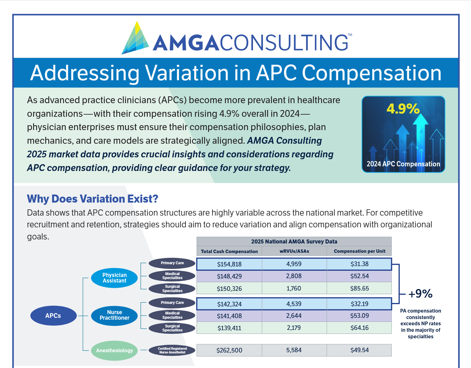 As APCs become more prevalent in healthcare organizations, physician enterprises must ensure their compensation philosophies, plan mechanics, and care models are strategically aligned. See the market data that provide crucial insights and considerations regarding APC compensation, providing clear guidance for your strategy.